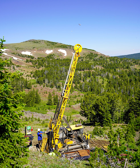 Figure 1: Drilling at the Iron Mountain deposit area of the Stillwater West project, over seven kilometers east of a second rig at the Chrome Mountain deposit area, in an iconic and historic mining district in Montana, USA.