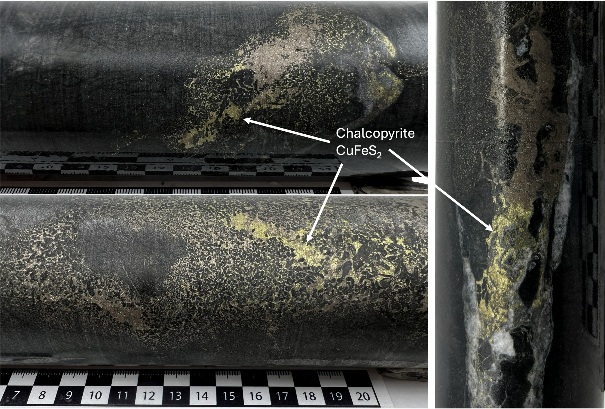 Figure 5: Core from the HGR deposit area at Iron Mountain drill hole IM2025-01 – Net-textured to semi-massive mineralization is shown from around 400m depth.