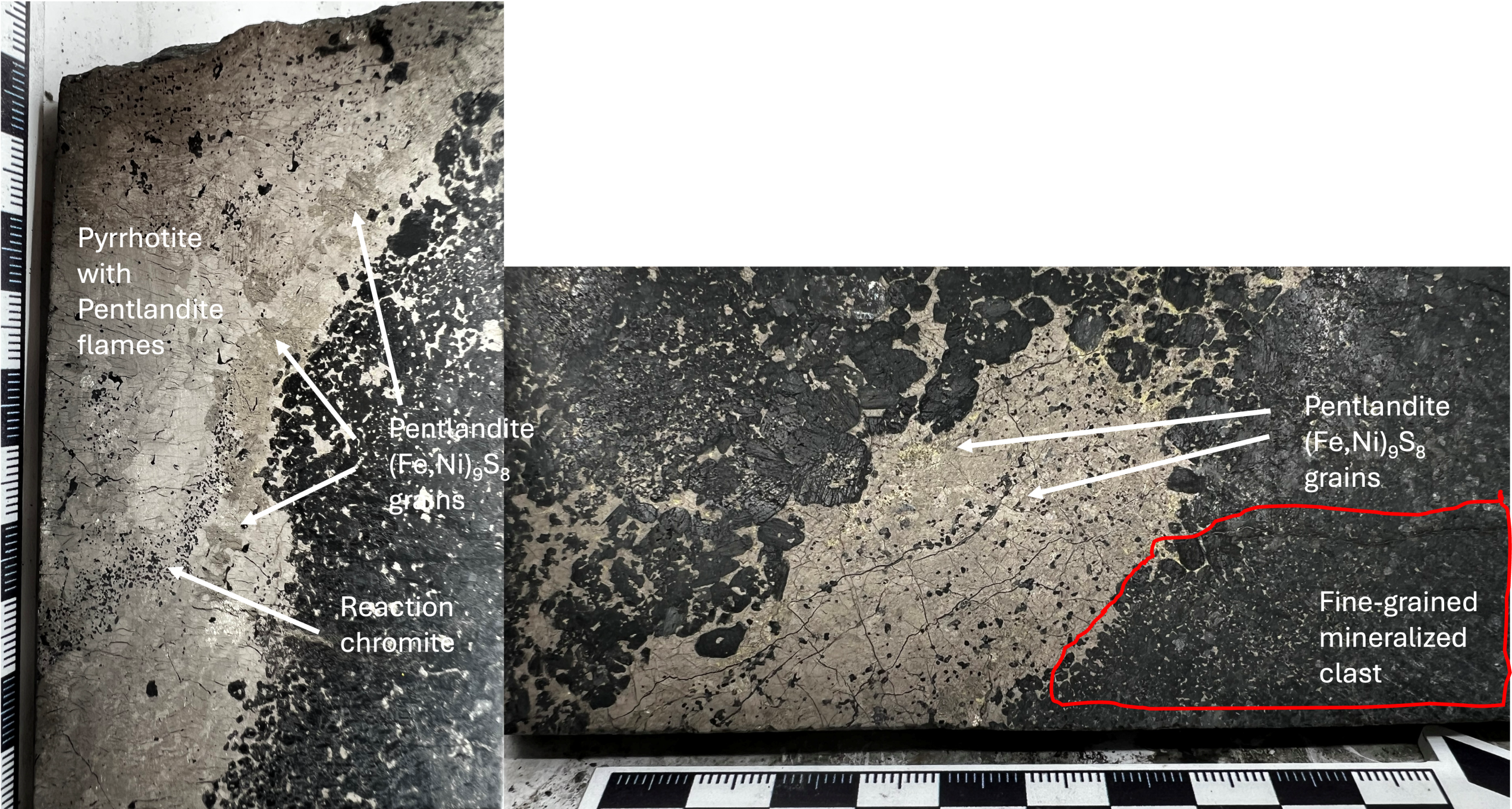 Figure 7: One 0.61m interval of core from Chrome Mountain drill hole CM2025-02 showing sulfide infiltration melt and breccia textures around 252m.