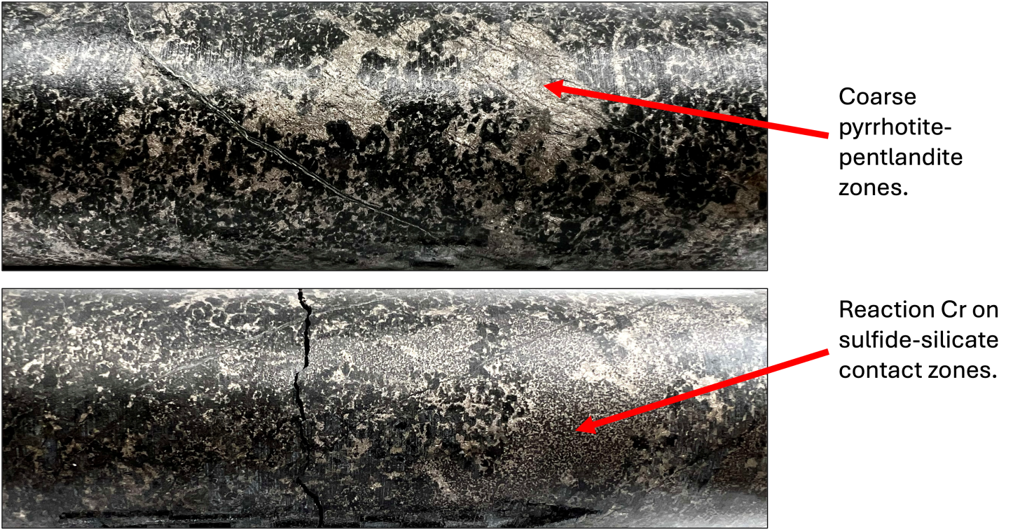 - High-grade zone: 4.9 m @ 0.72% NiEq from 85.6 m as 0.43% Ni, 0.29% Cu, 0.043% Co, and 0.40 g/t 3E.