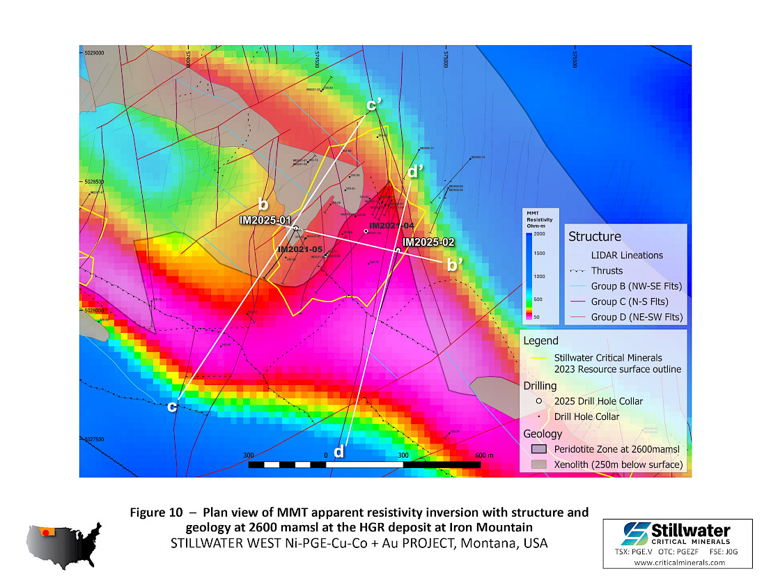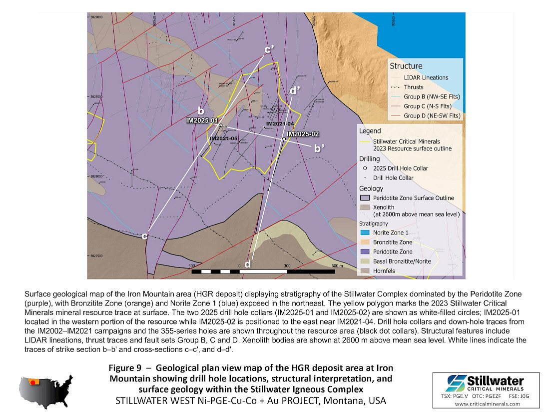Dr. Danie Grobler, Vice-President Exploration, commented “Platinum is an order of magnitude scarcer than gold, while there are very few PGE bulk tonnage near-surface deposits remaining in the world. Chrome Mountain continues to deliver wide intervals of Platreef-style mineralization enriched in platinum and palladium associated with magmatic nickel-copper sulphide mineralized zones. The 2025 drilling at HGR intersected a similar style and thickness of mineralization. We are now working with Glencore and Expert Geophysics to refine 2026 drill targets with a focus on expansion of shallow resources in the Chrome and Iron Mountain areas. Within the 20 km detailed in the model of the main claim block, drilling has now defined mineralization along a total strike length of 3.3 km within the five resource areas, indicating significant opportunity for continued near-surface resource growth.”