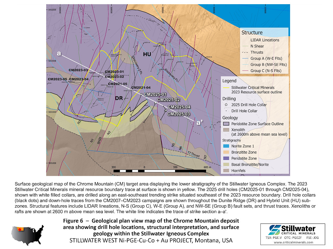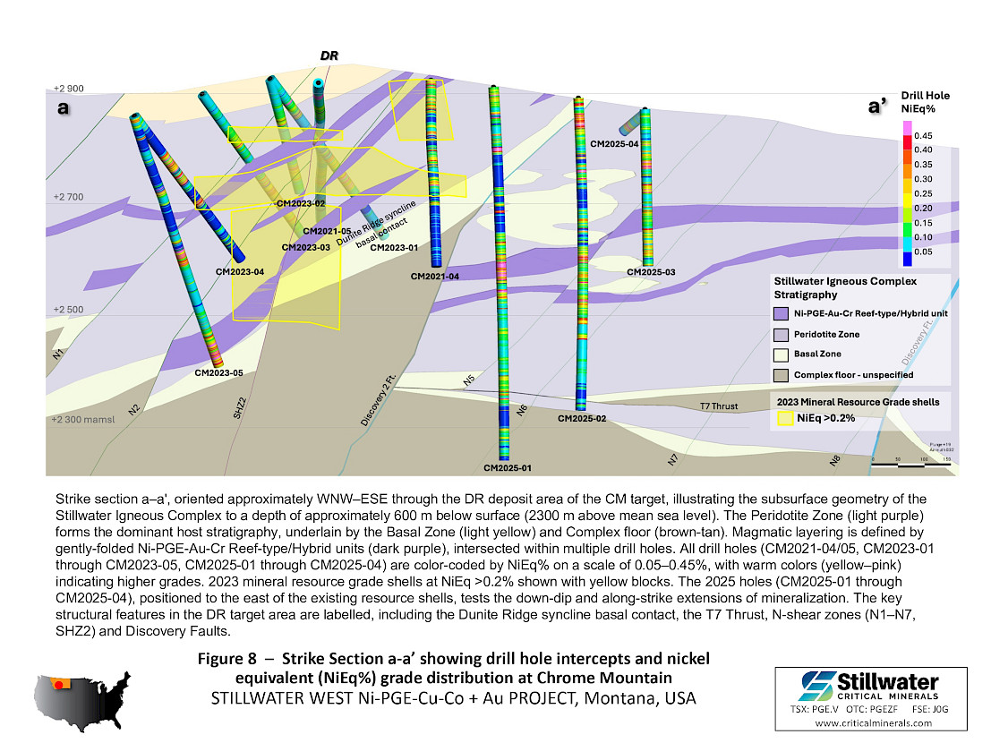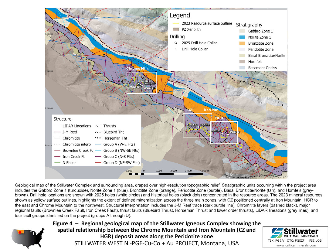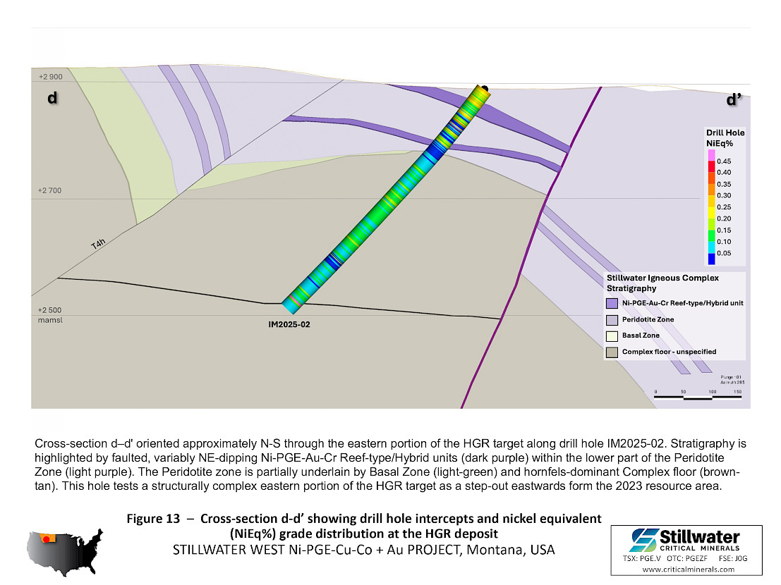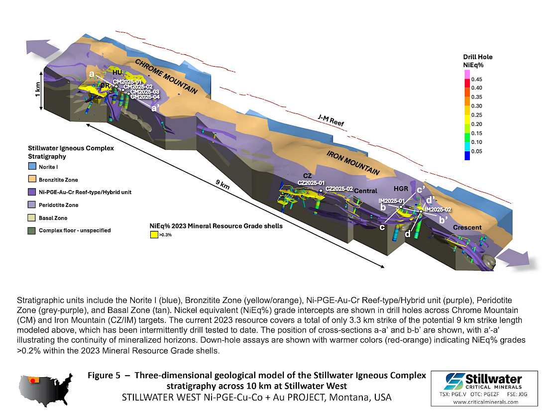 - The 2025 drill program was designed to expand the January 2023 MRE along a 10-kilometer (“km”) mineralized trend at Stillwater West, where a broad zone of sulphide-rich nickel, copper, cobalt, PGE, gold and chromium mineralization has been defined across multiple deposits.