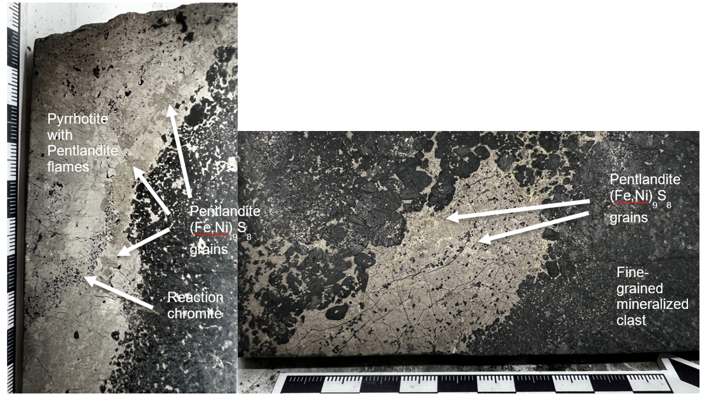 Figure 3 - Net-textured to semi-massive mineralization in core from Iron Mountain drill hole IM2025-01 displaying sulphide liquid percolation textures at around 417m depth.
