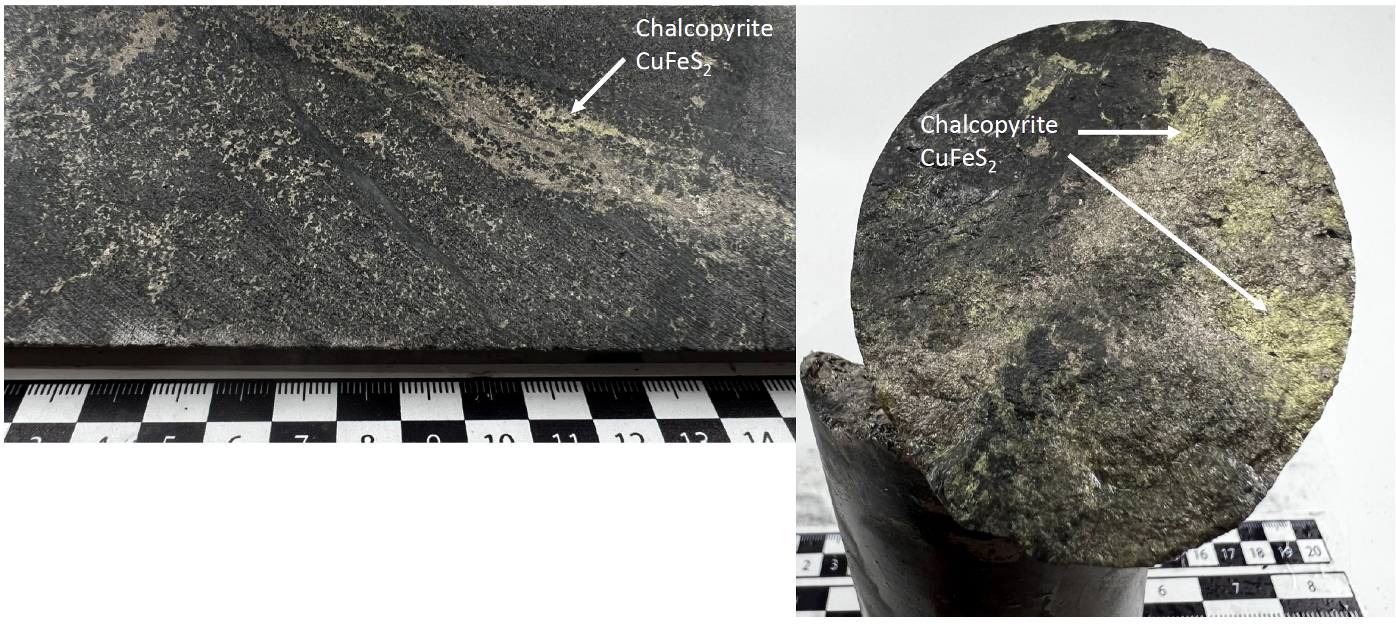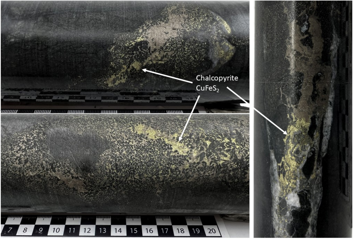 Figure 2 - Core from Iron Mountain drill hole IM2025-01 showing net-textured to semi-massive mineralization at around 400m depth.